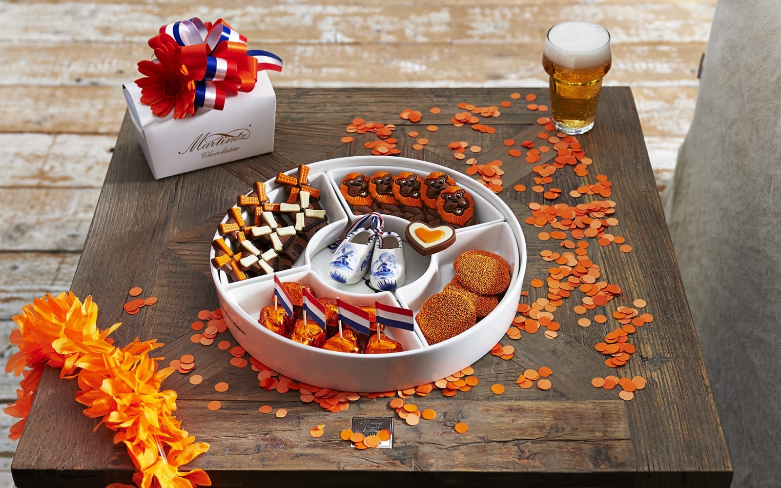 Dit jaar breiden we het reguliere assortiment uit met chocoladehartjes-, leeuwtjes-, windmolentjes- en musketflikken. Geniet u bij de volgende Koninklijke aangelegenheid of wedstrijd van één van onze geweldige Oranje- sportteams of sporters ook van onze heerlijke chocolade? Bekijk snel onze catalogus!